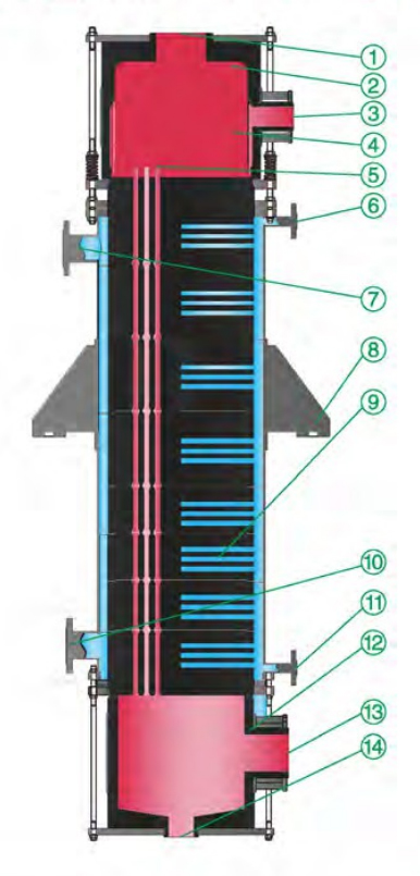 La structure représente un absorbeur à film tombant en graphite YKX modifié. Cet élément d'échange thermique par absorption est dépourvu d'orifice central. Dispositif d'absorption de gaz aux performances exceptionnelles, il se distingue par sa petite taille et son taux d'utilisation des matériaux relativement élevé.